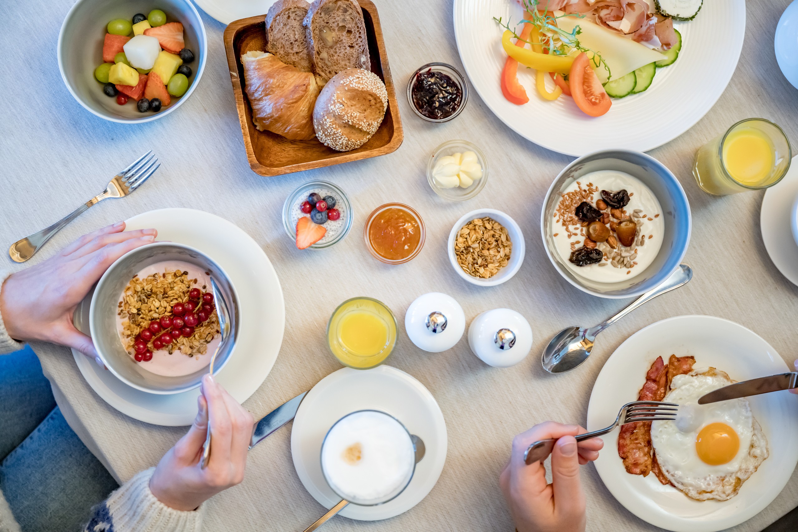 Denn nichts geht über ein gesundes, vollwertiges Frühstück, welches Sie lange satt macht und Sie mit vielen guten Nährstoffen versorgt. Ob Müsli, frisches Gebäck oder Herzhaftes, es ist für jeden Geschmack etwas dabei. Ein gesundes Frühstück macht gute Laune und gibt Ihnen Power für den Tag.